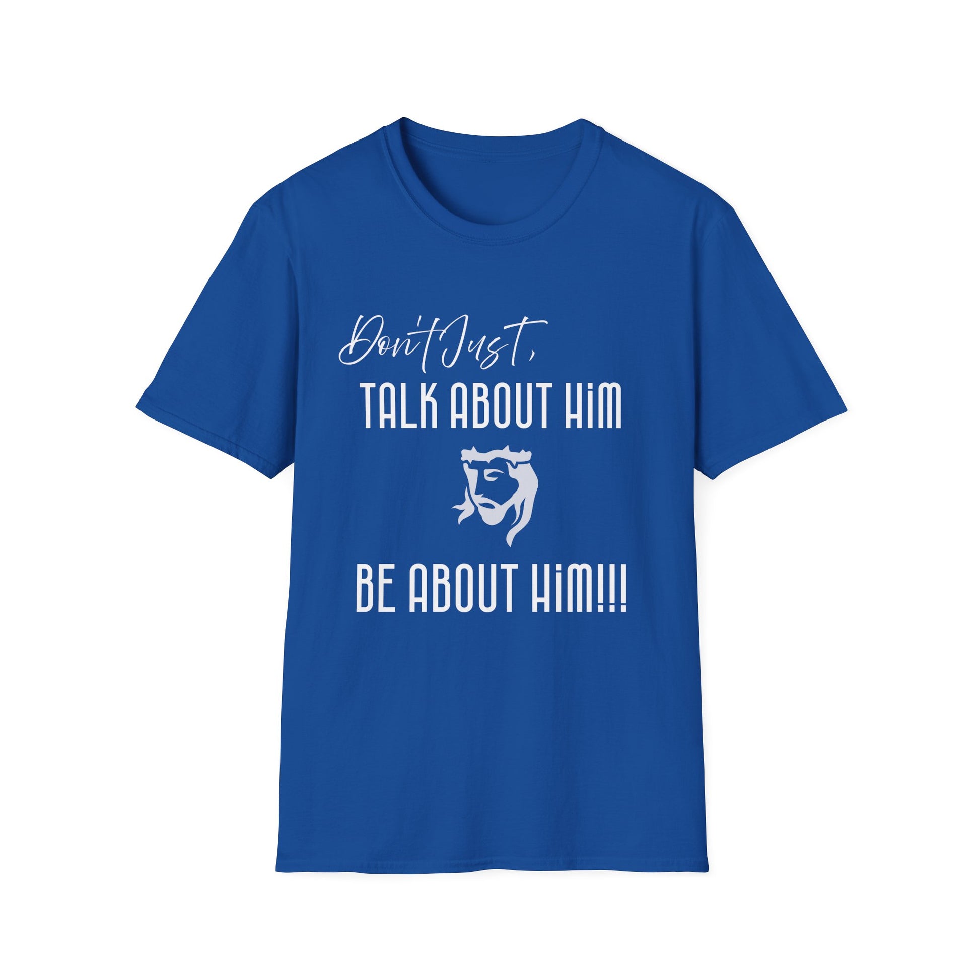 This "Be About Him" unisex soft-style t-shirt is a sister design which is the "Be About it" based upon it, being the Cross. Another Jesus-collaborated fashion that puts on a comfort that is immediately felt. Made from very soft materials, this tee is 100% cotton for solid colors. Heather colors and sports grey include polyester. The shoulders have twill tape for improved durability.