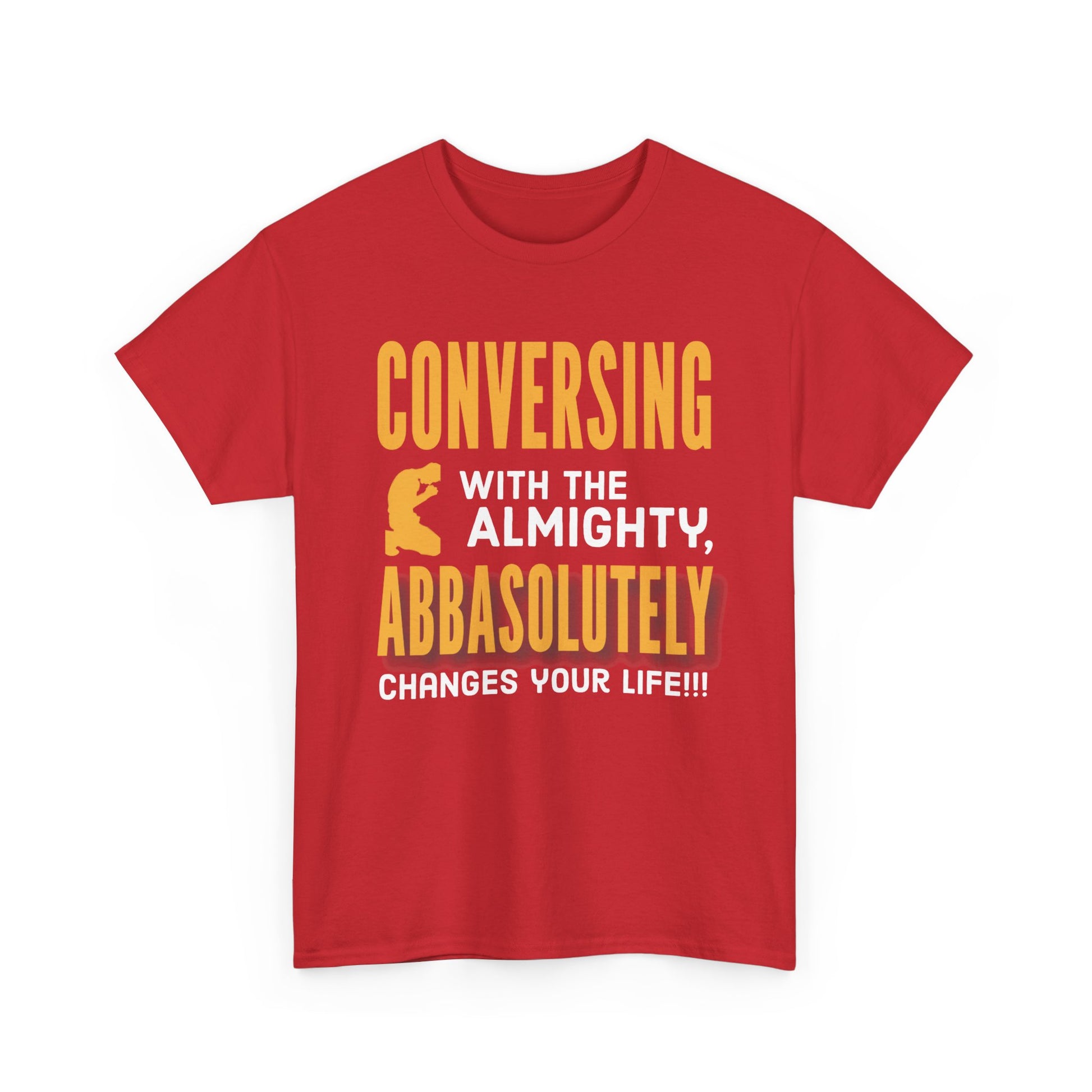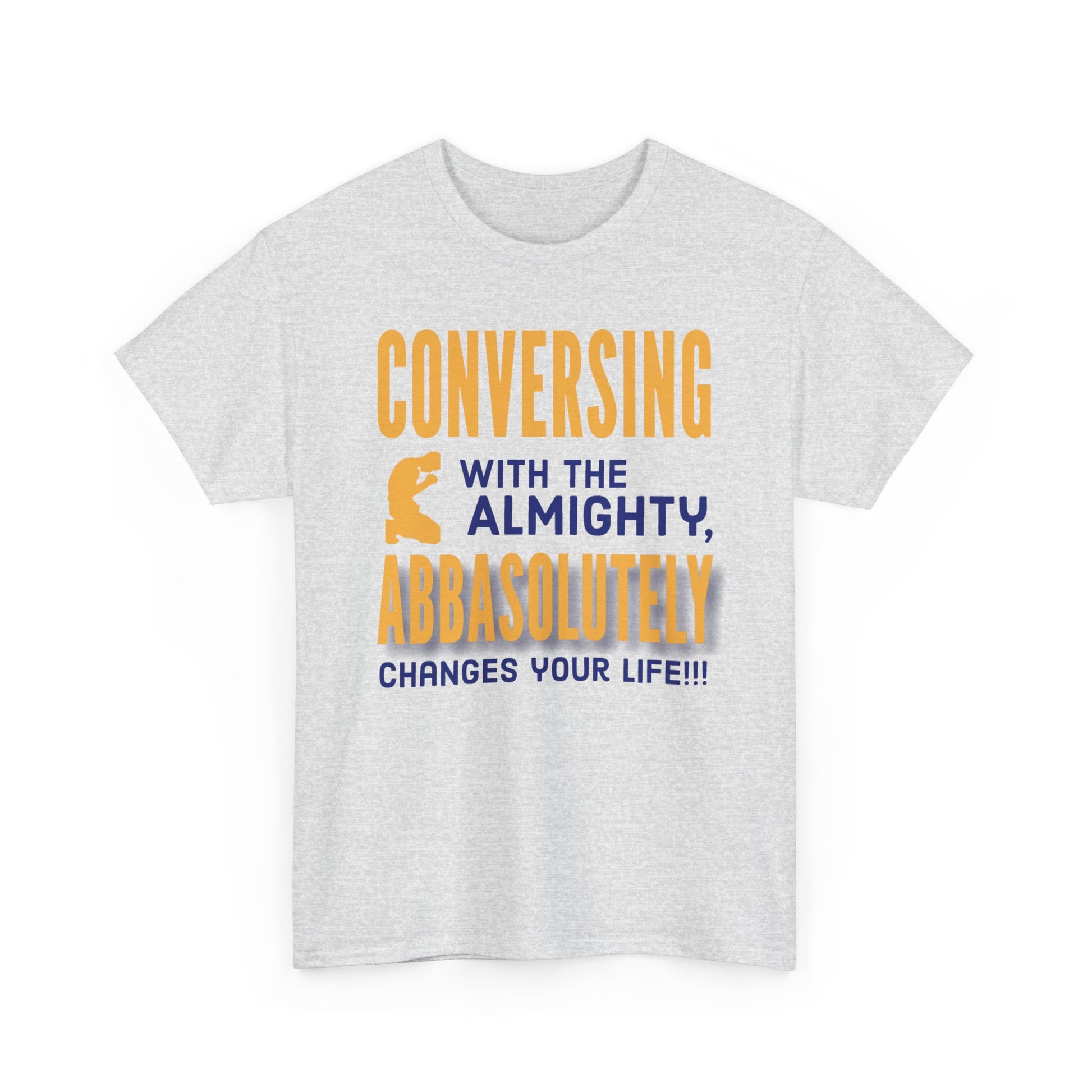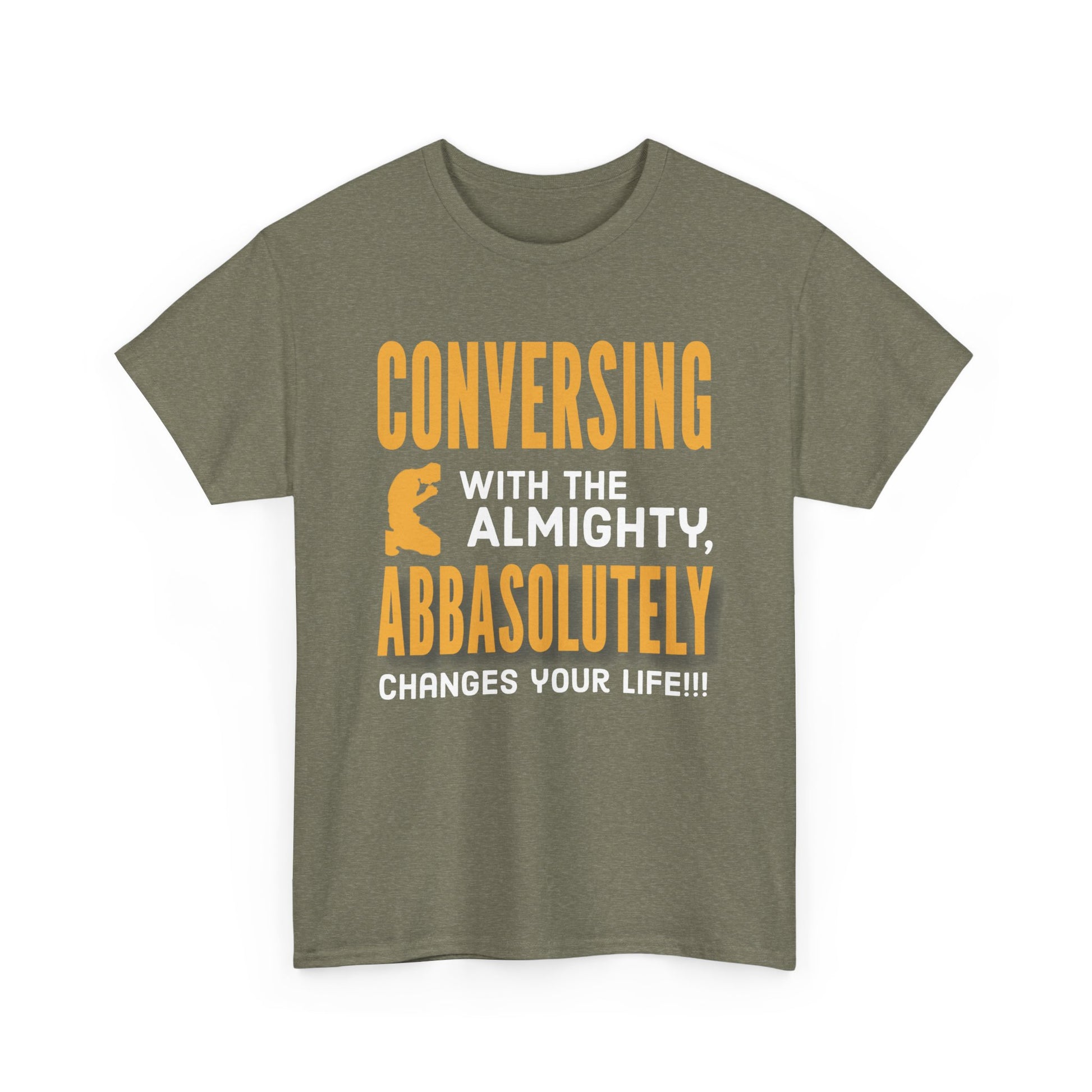 This "Conversing With The Almighty" unisex heavy cotton tee comes to us from a line inspired by Mel Gibson's Braveheart. From one character to another, it is a question of prayer. Another foundational truth upon which Jesus-collaborated fashion grows. So now, we can know that prayer changes lives. The shoulders have tape for improved durability.