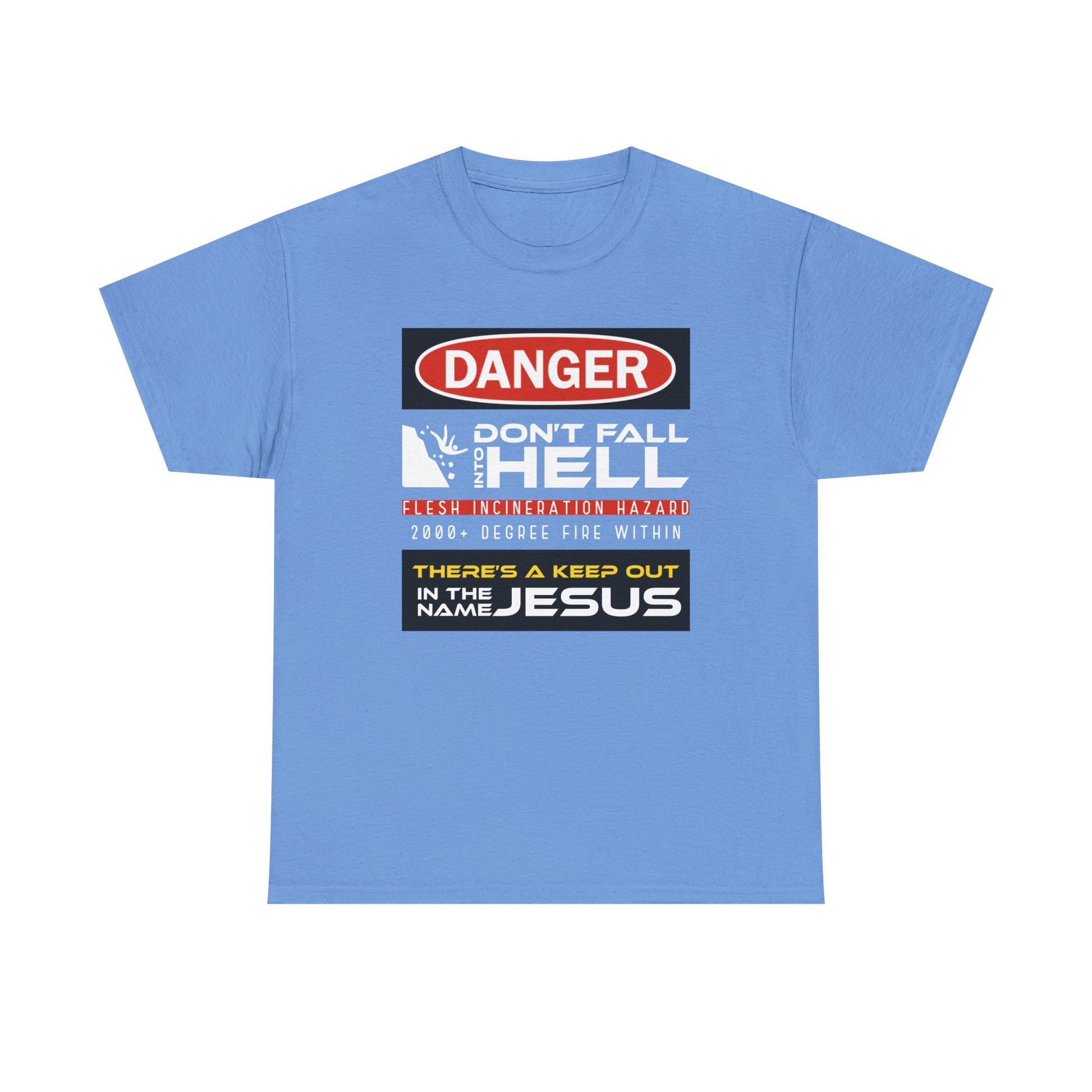 This "Don't Fall into Hell" unisex heavy cotton tee is an exhibition of Evangelism at it's peak. Time to be a catalyst for people to see that falling into hell is the epitomy of danger. It is the foundation upon which Jesus-callaborated fashion grows. The specialty spun fibers provide a smooth surface for premium printing vividity and sharpness. No side seams mean there are no itchy interruptions under the arms.