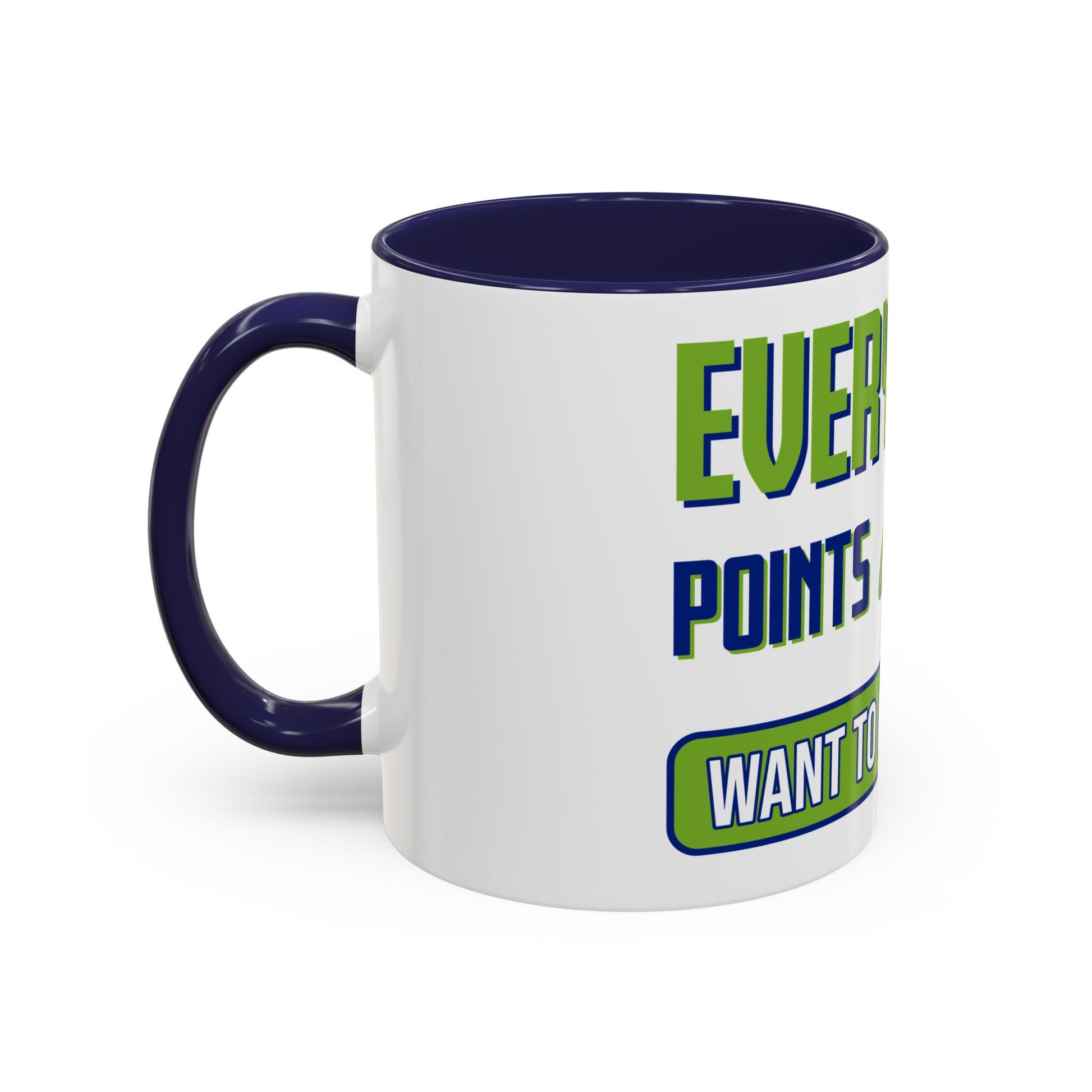 This "Everything Points" 11oz mug features an accented C-Handle that is comfortable to use, as well as an accented interior to add more contrast and character. Design is based on Romans 11:36, "For of Him and through Him and to Him are all things, to whom be glory forever. Amen." The design should make people take notice of the glory they are pursuing within themselves and start throwing it towards where it belongs, to Him.