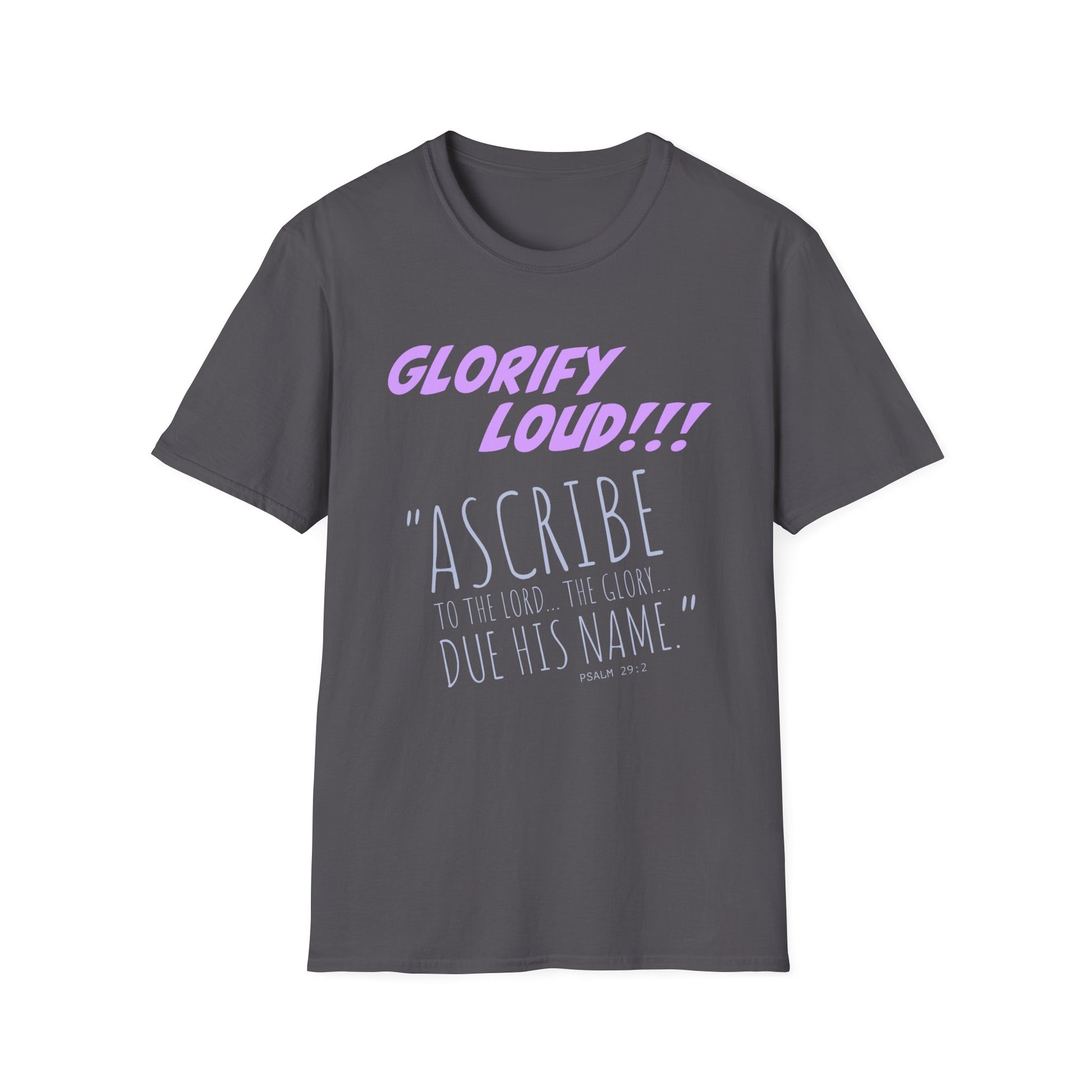 The "Glorify Loud" unisex soft-style t-shirt puts a brand new perspective on Jesus-collaborated fashion. The 2nd verse from Psalms 29 inspired it, and quickly defines the magnitude at which we should worship.