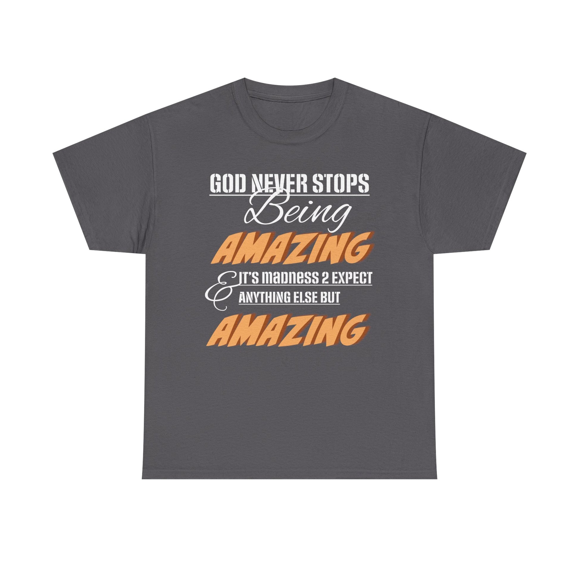 God Never Stops Being Amazing Unisex Heavy Cotton Tee - God Never Stops Being Amazing, Motivational Shirt, Gift for Friends, Everyday Wear, Casual Apparel