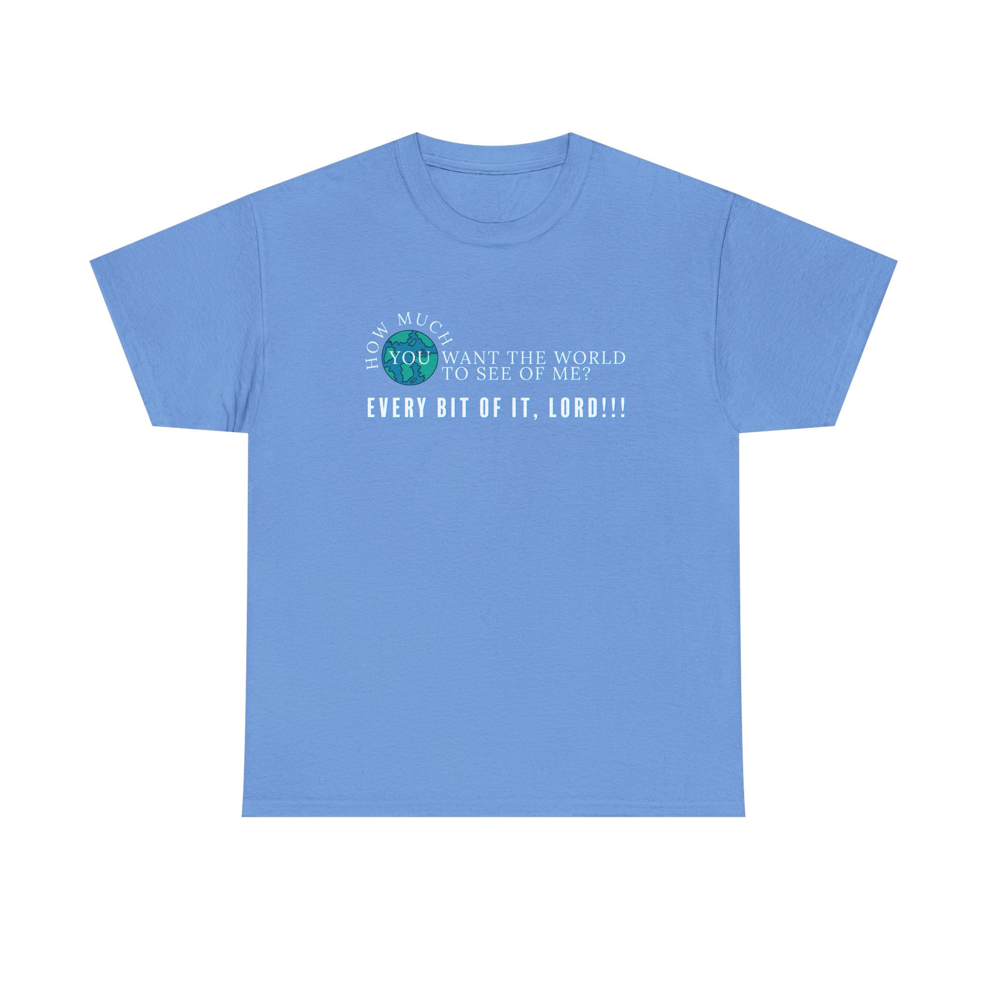 This "How Much You Want" unisex heavy cotton tee is another quote from Jom Caviezel while doing media runs for The Passion. This statement was made when Jim felt the Lord asking him this question. Obviously, he didn't back down from a challenge from the Lord, Every bit of it! We, as a body of Christ should be just as eager to jump all in to lead His world back to Him. It is another foundation upon which Jesus-collaborated fashion grows. The specially spun fibers provide a smooth surface for premium printing vividity and sharpness. No side seams mean there are no itchy interruptions under the arms.