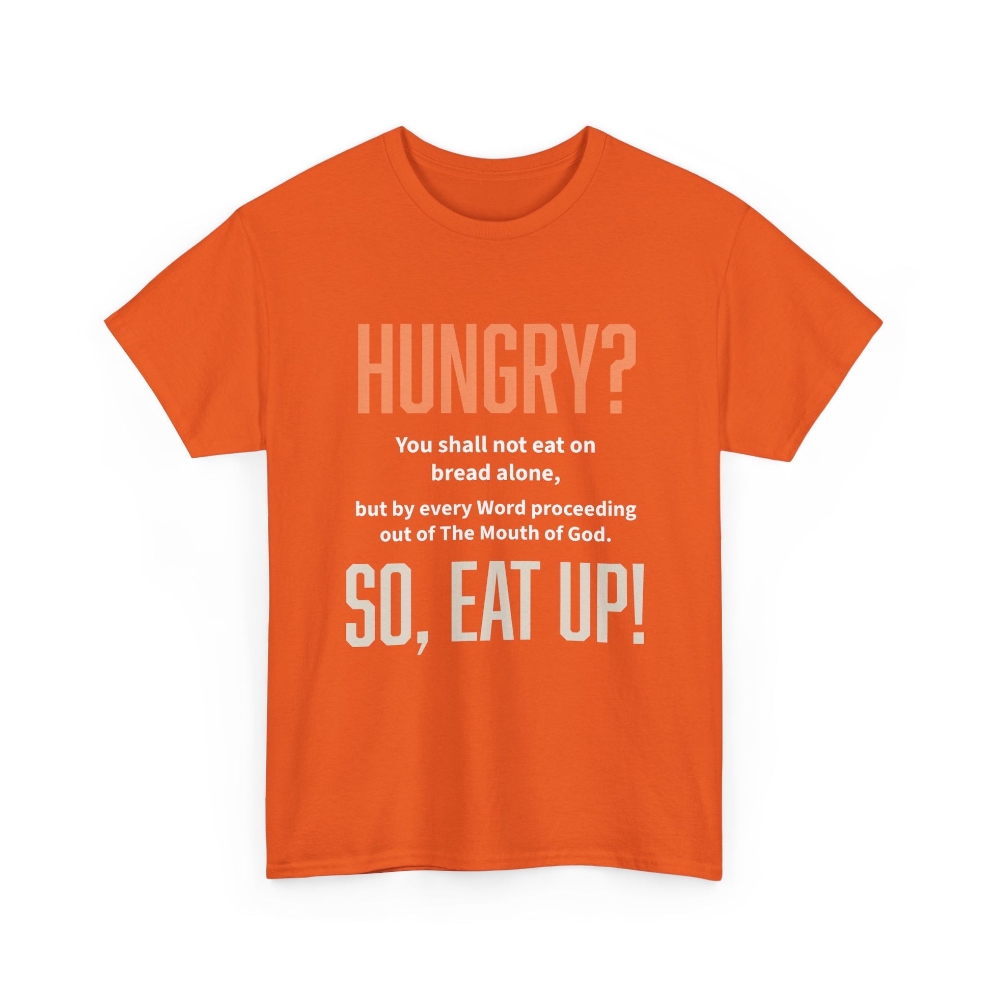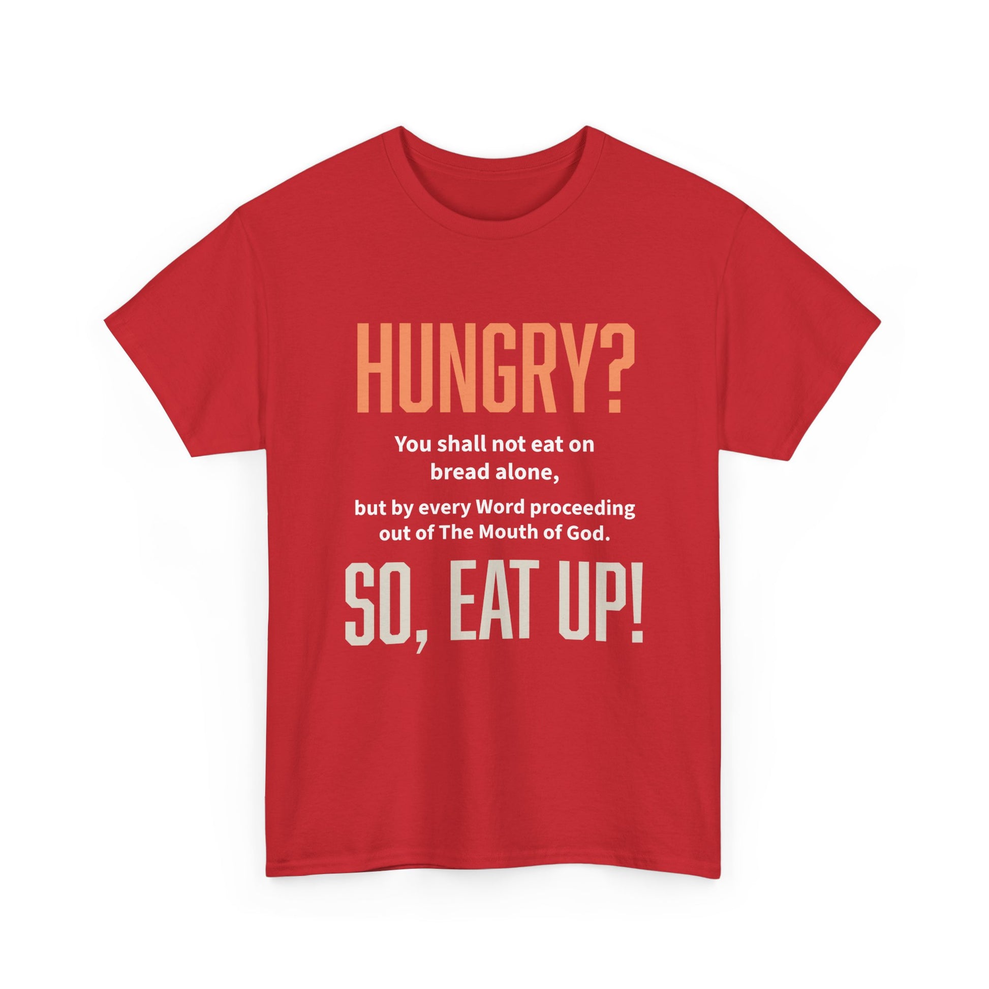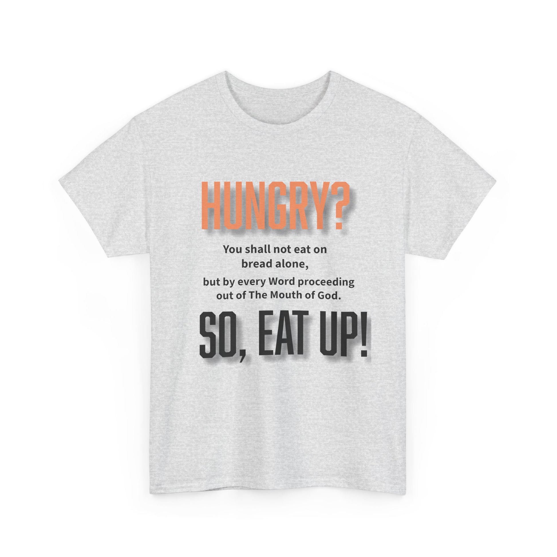 Embrace comfort and style with this "Hungry? So, Eat Up!" unisex heavy cotton tee, perfect for showcasing your love for The Word of The Lord while keeping you cozy throughout the day. The design is inspired by Matthew 4:4.