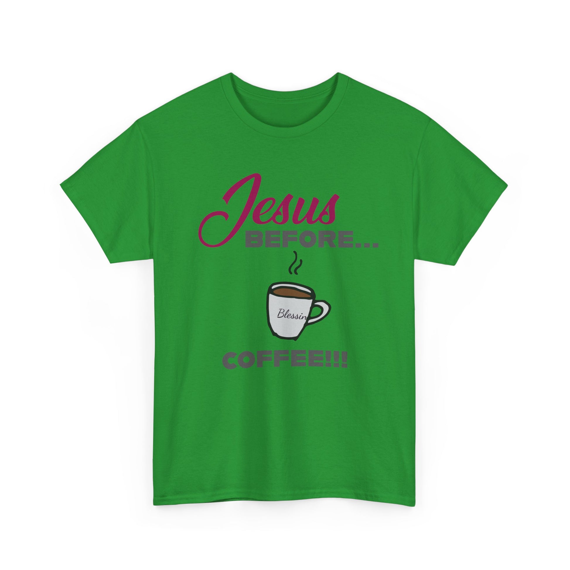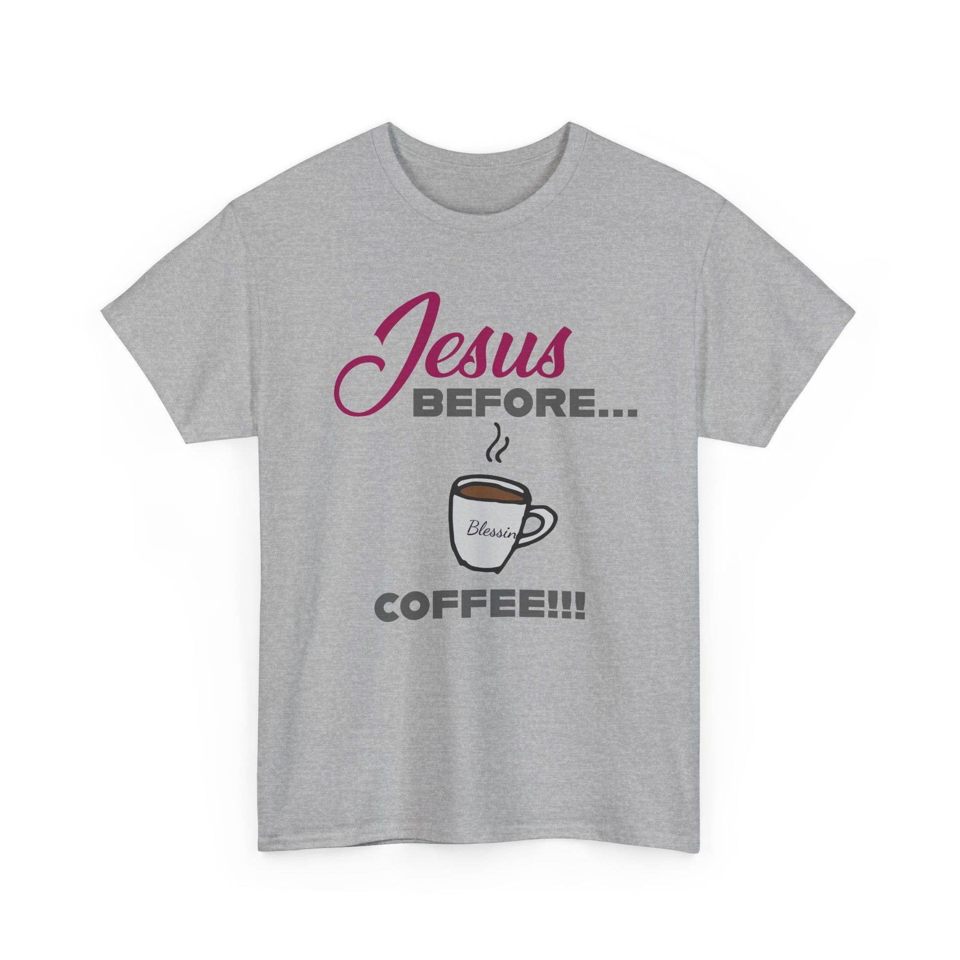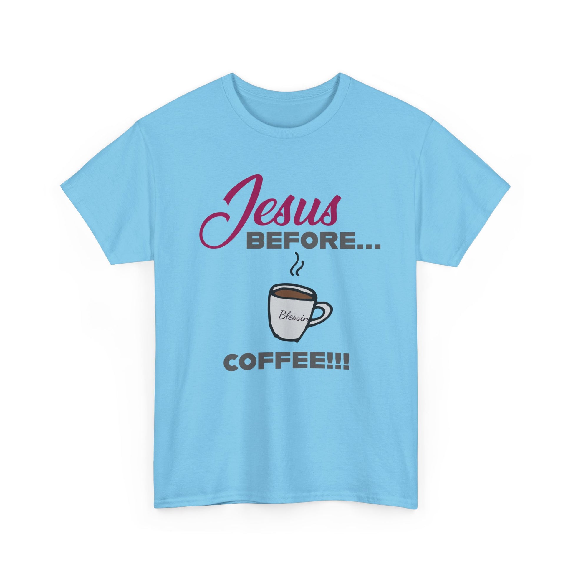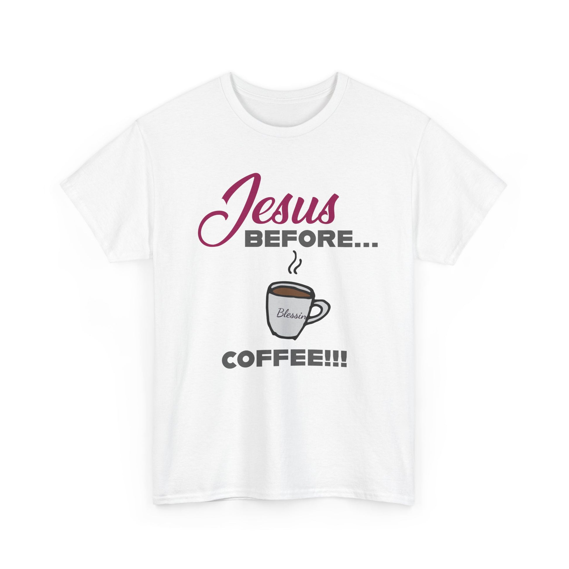 This "Jesus Before Coffee" is part of a mission that puts "Jesus Over Everything!!!" Something like starting your day as "Jesus First" then grab your cup of Joe. God is in in the business of blessing His people, so why not talk to Him a bit before taking that first swig? Design came from a similar design we saw, but it said, "Coffee before Jesus." Since we believe that "Jesus over Everything " is a real thing, then we reimagined a Jesus-collaborated design upon which this casual fashion grows when the redesign gains more traction.