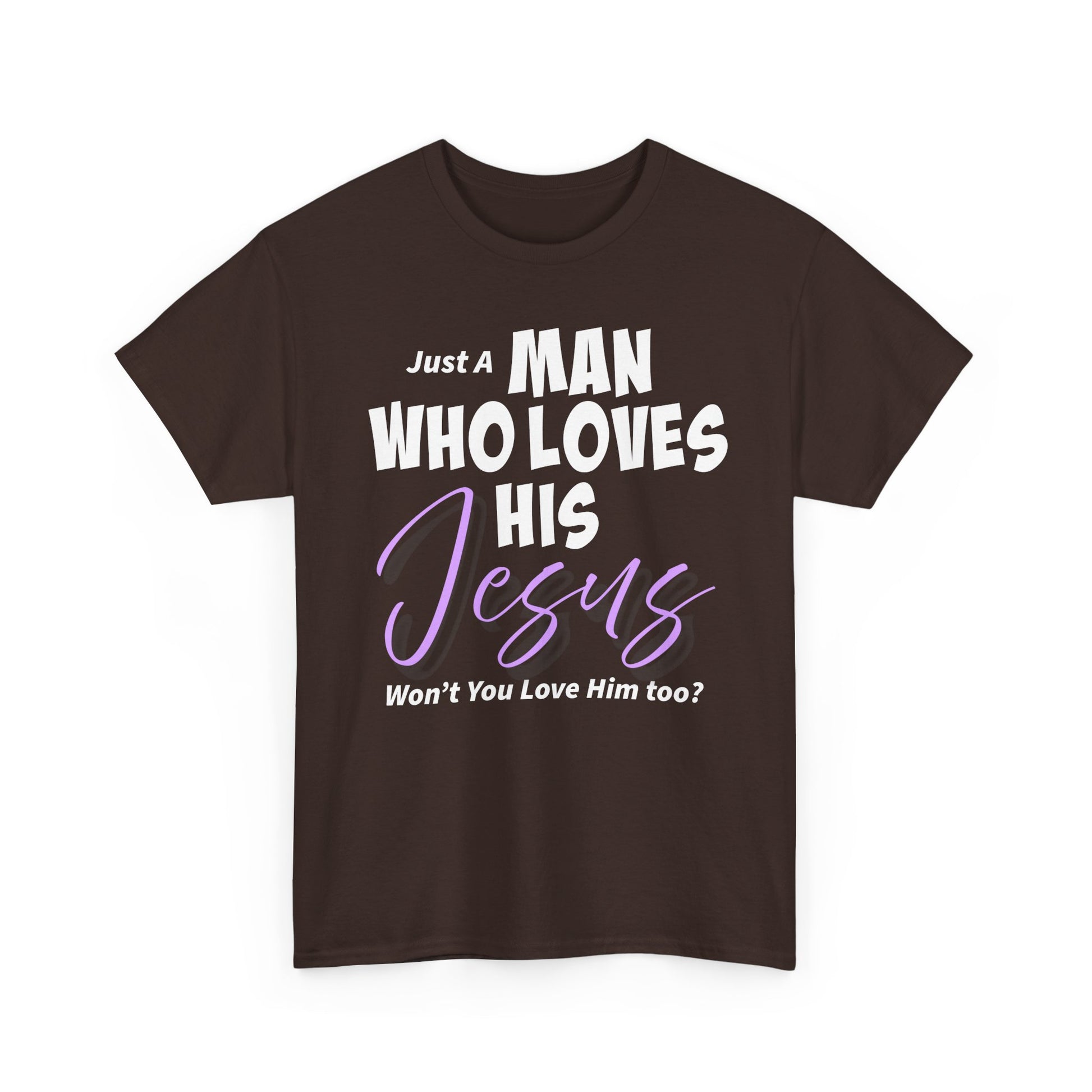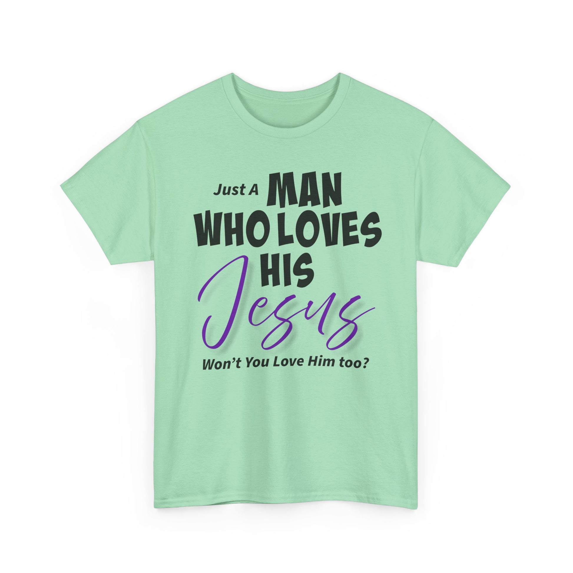 Celebrate your faith with this "Just A Man Who Loves His Jesus" unisex heavy cotton tee featuring an inviting message. This tee combines comfort and style, making it perfect for daily wear or special gatherings. The design inapired from a little boy at Chick-fil-A who was wearing a shirt about his dad. This is design about devotion, ro The Love of God. This tee appeals to anyone who cherishes their relationship with Jesus. Ideal for church events, Christian holidays, or casual outings, this shirt will inspire conversations and connection. Whether you're gifting it to a friend or wearing it yourself, it adds a personal touch to any outfit while spreading a positive message.