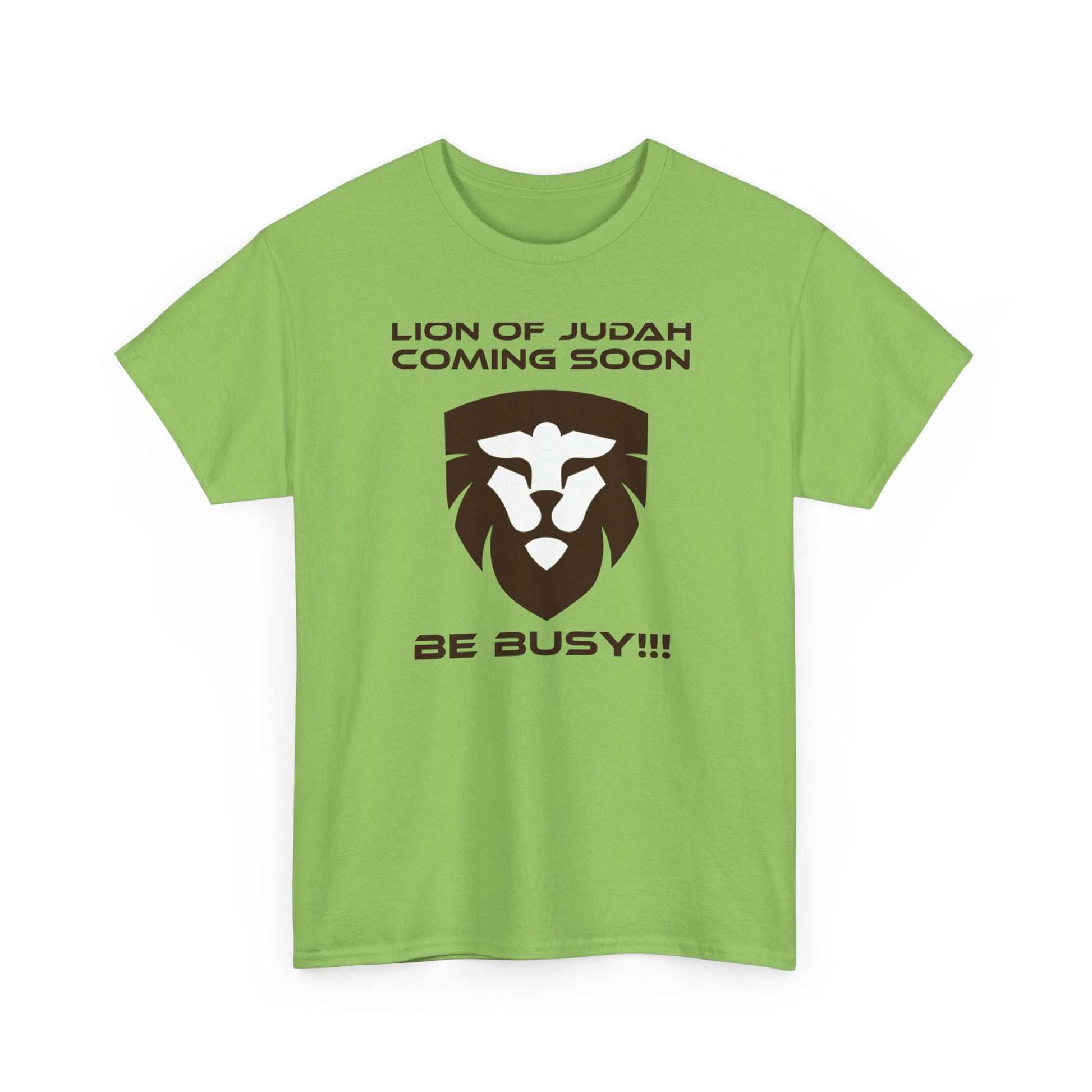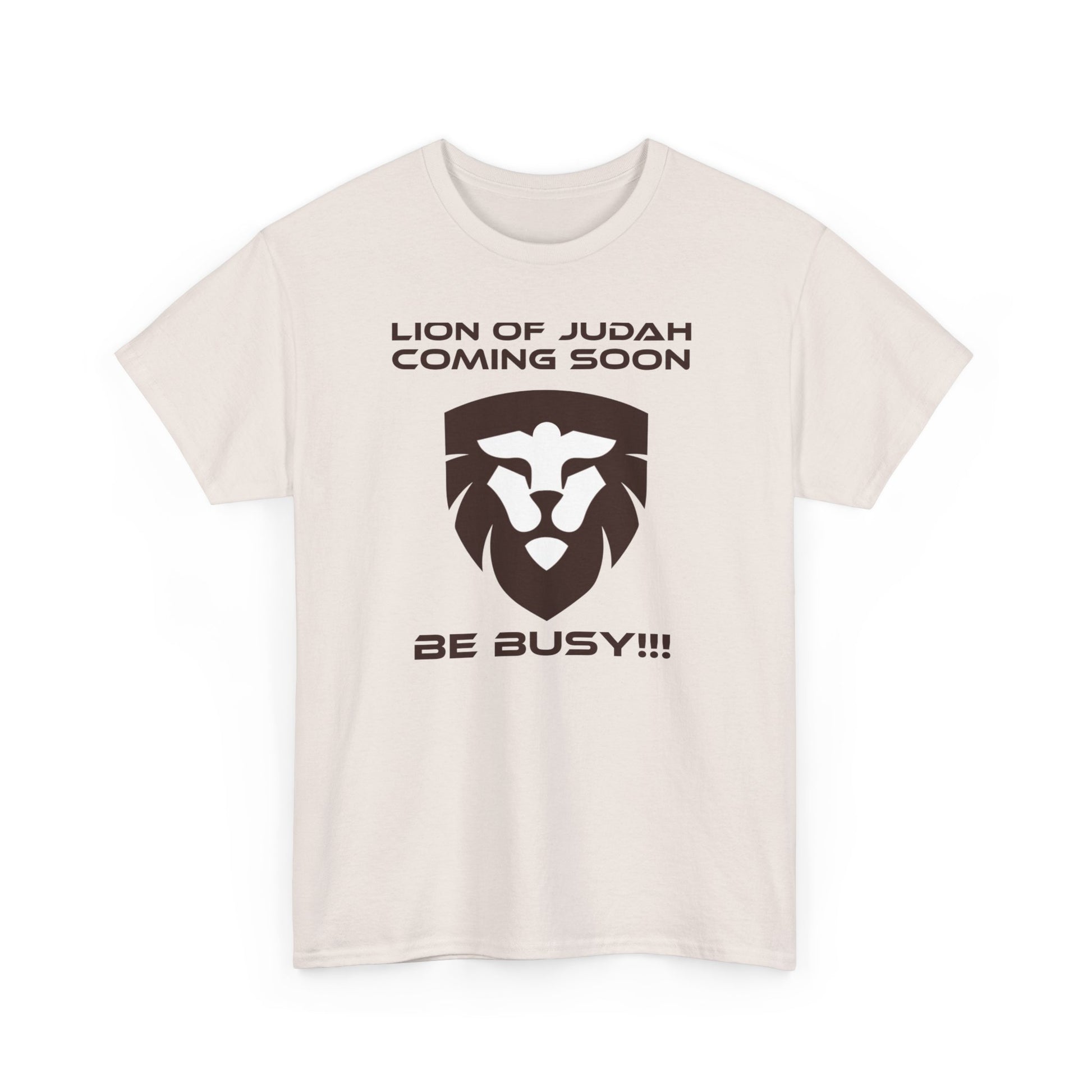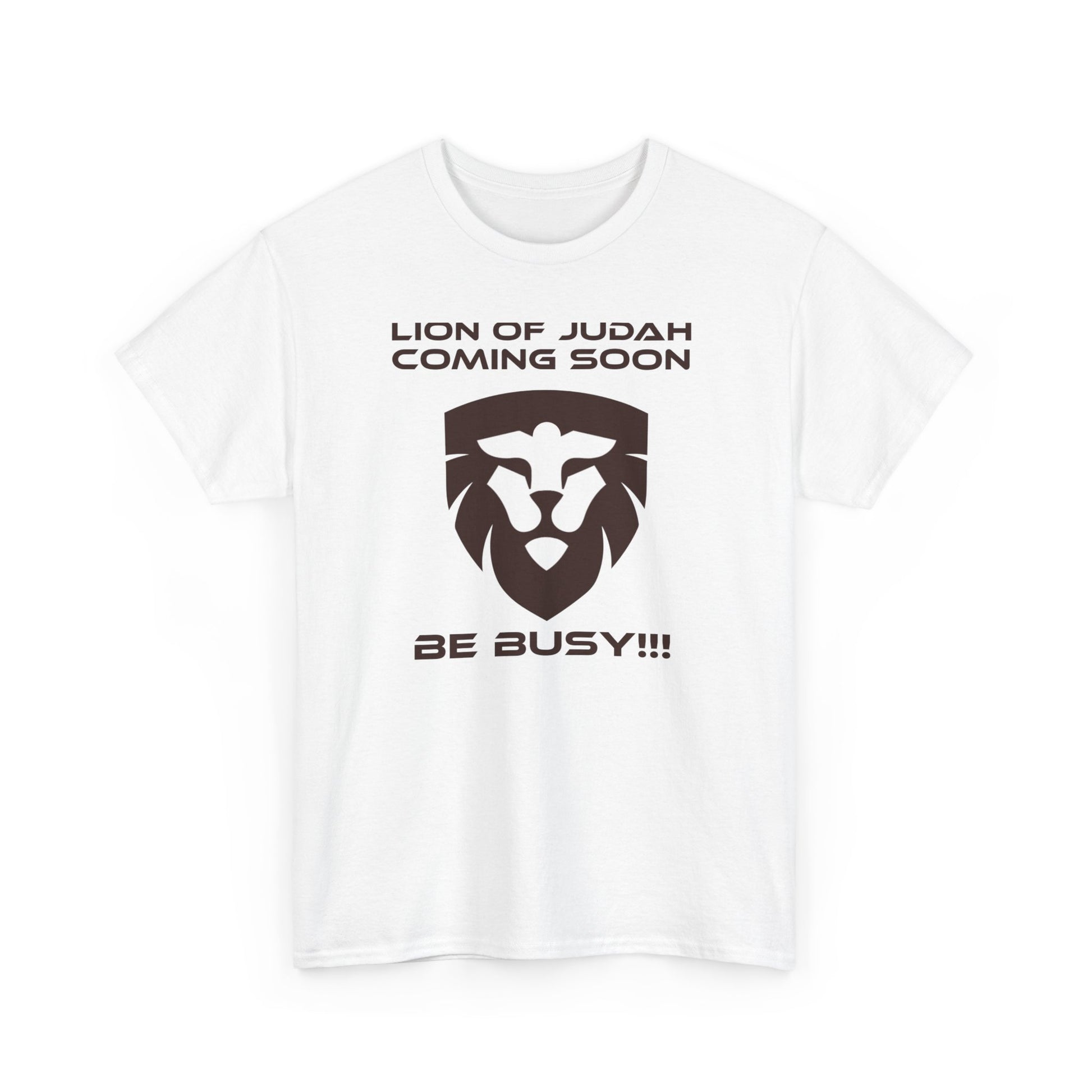 This "Lion of Judah Coming Soon" unisex heavy cotton tee is a basic design taken from Revelation 5:5,