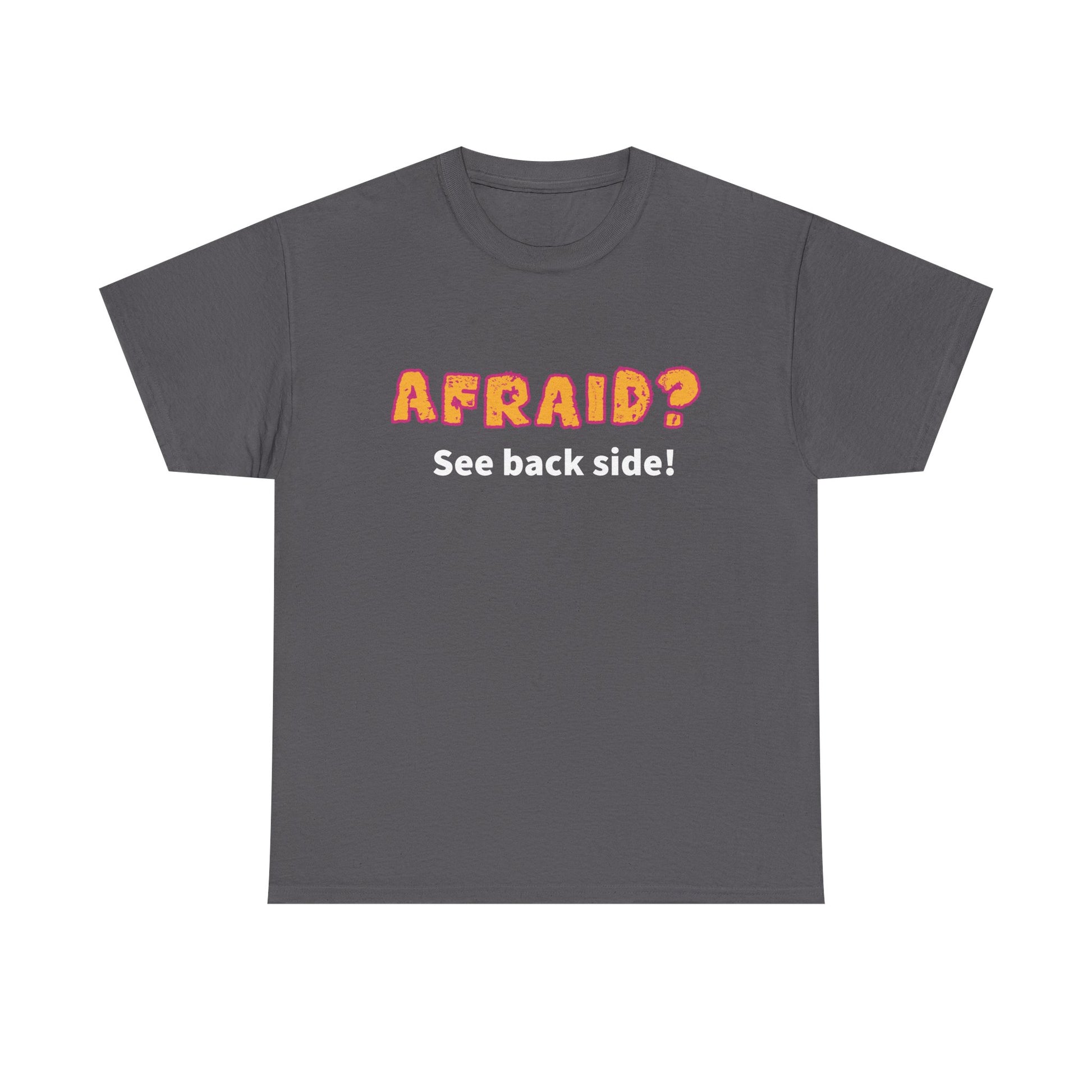 Not so Funny "Afraid?" Unisex Tee - "AFRAID? See back side!" T-Shirt, Casual Cotton Shirt, Gift for Friends, Humor Clothing, Novelty Tee