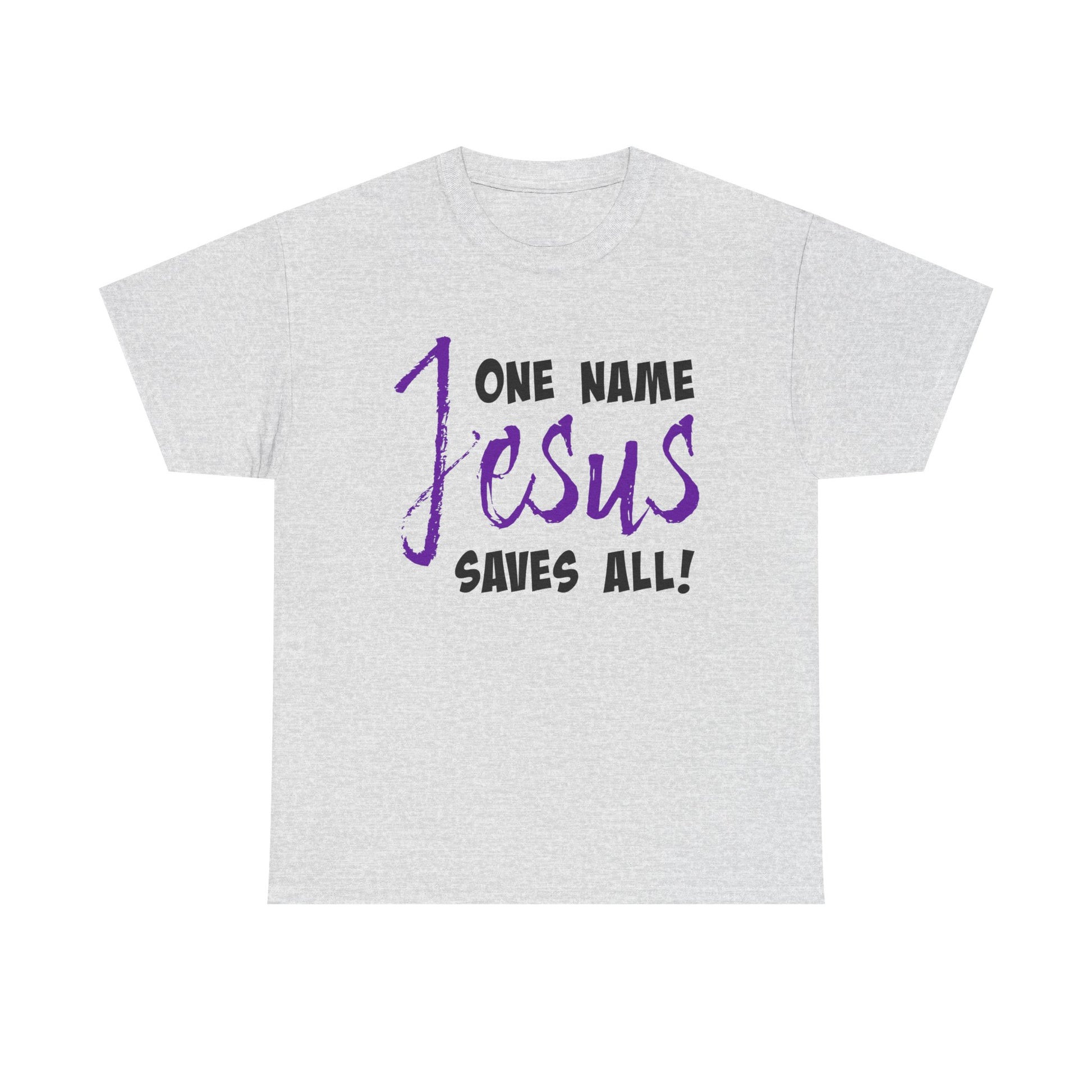 One Name Jesus Saves All! Unisex Heavy Cotton Tee, Christian T-Shirt, Faith-Based Apparel, Religious Gift, Inspirational Wear