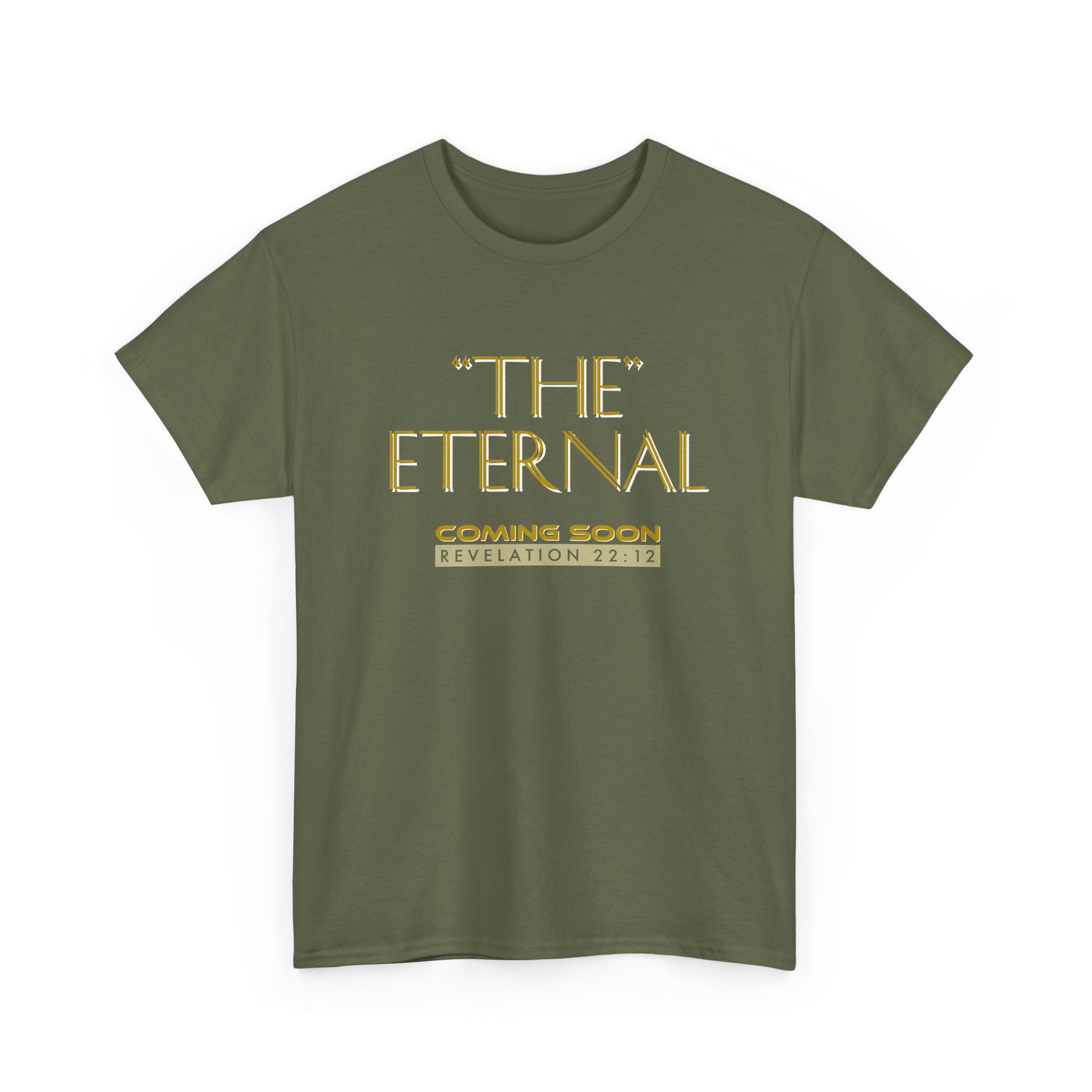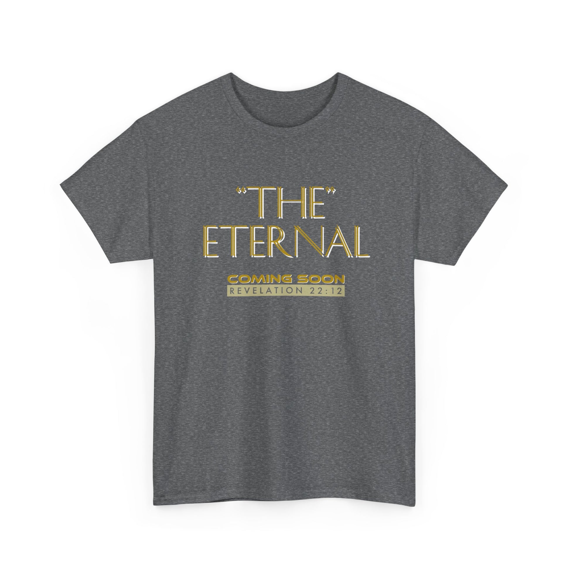 This "The Eternal" unisex heavy cotton tee is a slap-in-face staple ro todays's culture where everyone thinks Superheros can compare to Christ. Not today or ever. It sits upon the foundation of the gospel, "I Am coming back!" as this Jesus-collaborated fashion grows. The specialty spun fibers provide a smooth surface for premium printing vividity and sharpness. No side seams mean there are no itchy interruptions under the arms.